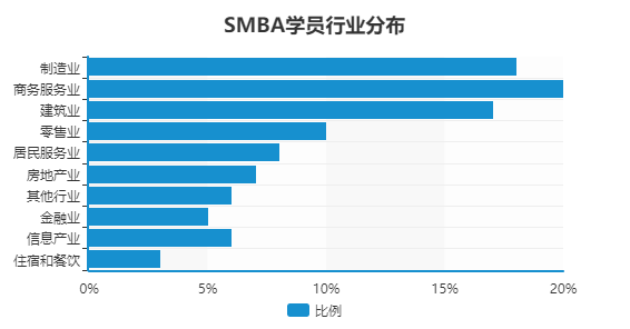 截止至2020年12月,SMBA (非系统班)共招收学员360余人。SMBA学员大部分为企事业单位的中高层管理人员。
