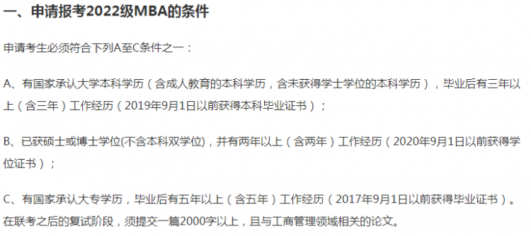MBA报考条件: