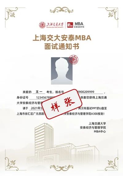 由于提前批面试名额有限,经上海交通大学安泰经济与管理学院MBA招生领导小组综合评定,2022年入学MBA提前批面试(第三批)面试名单已确定,请于2021年7月13日20:00后登录报名系统内“申请进度”处查看结果,上传健康码及大数据行程卡(2021年7月14日周三17:00前),并自行打印《面试通知书》。也可从本公众号菜单登录报名系统查看。