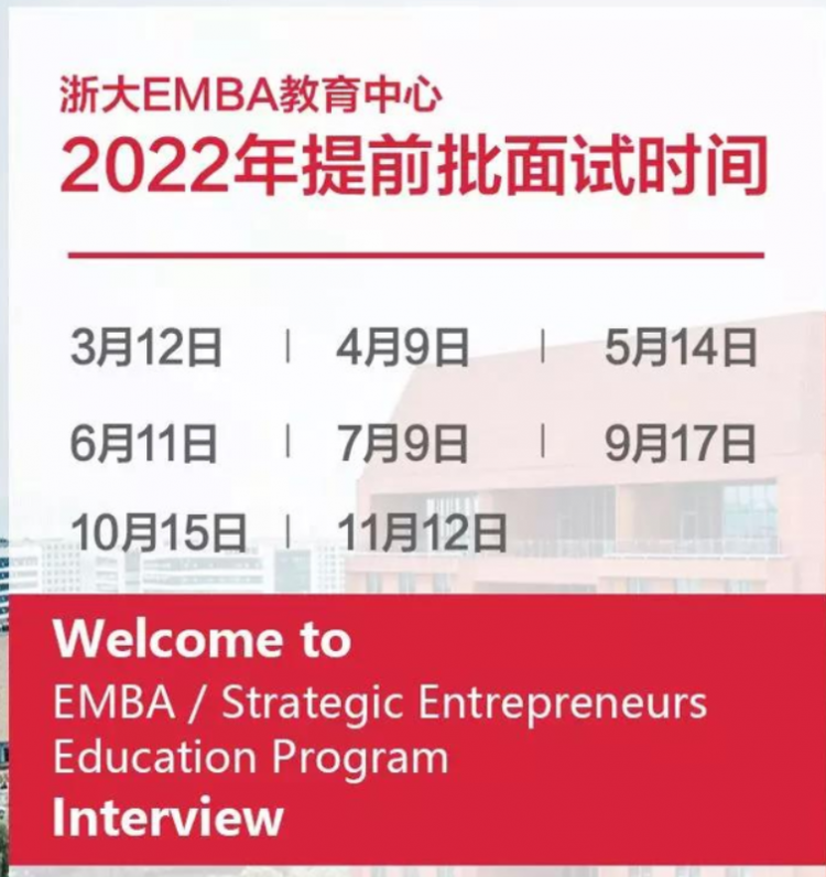 当前文章:浙大EMBA教育中心2022年提前批面试时间发布