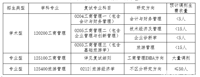 各专业方向预计调剂生需求量