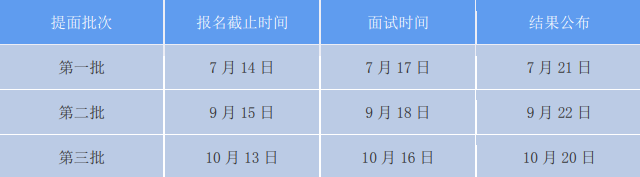 3、提前面试结果通过官方网站、官方微信公众号在该批次面试结束后3个工作日内分批公布。